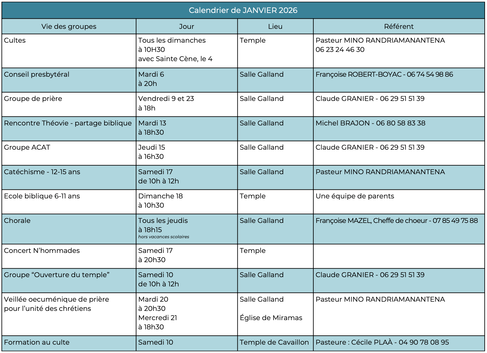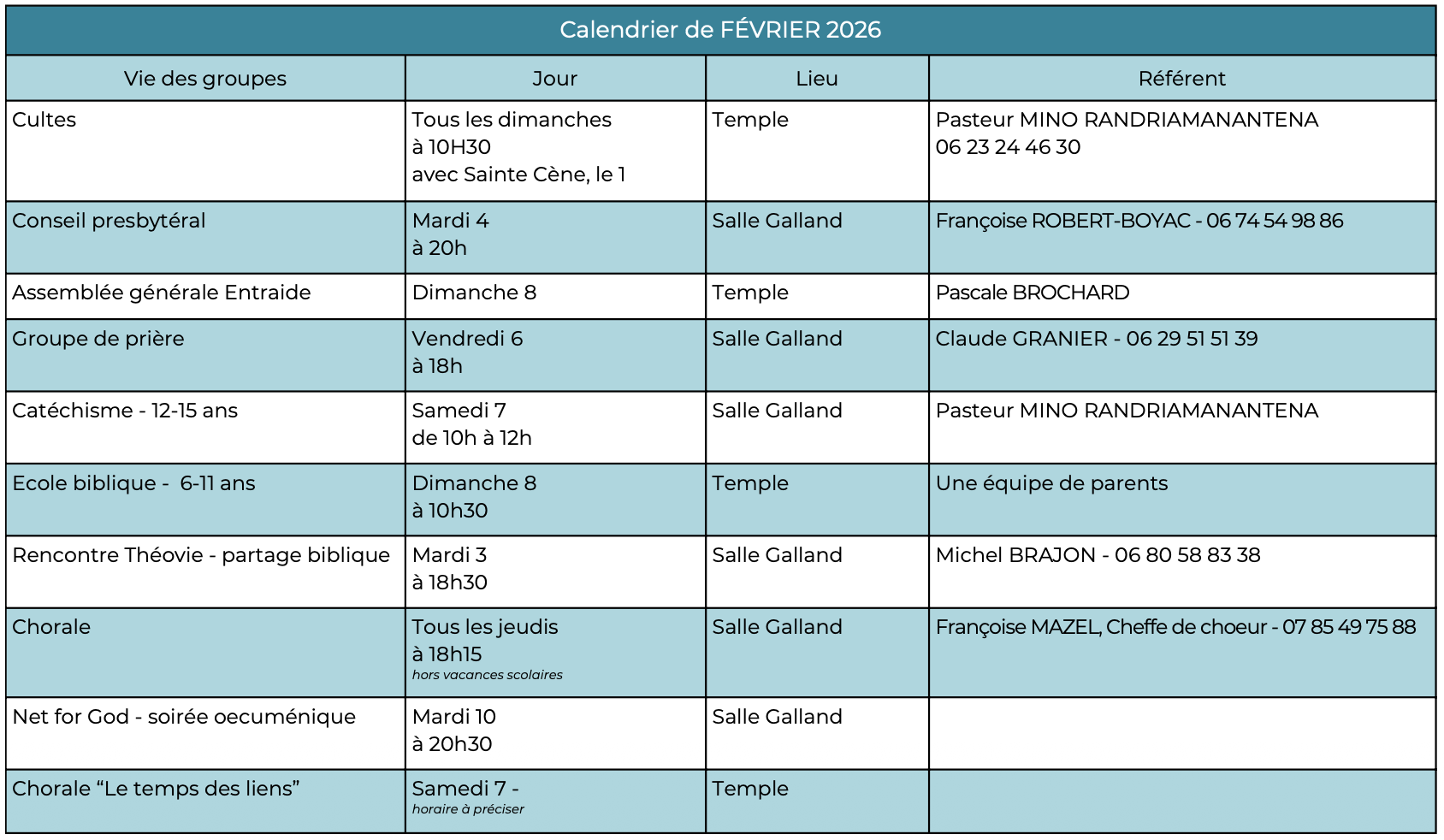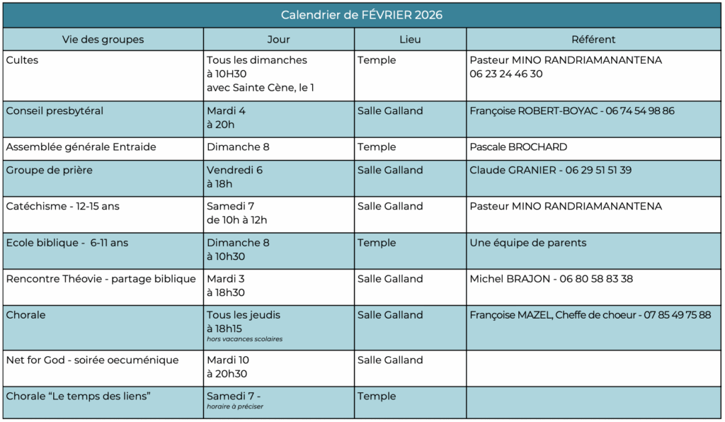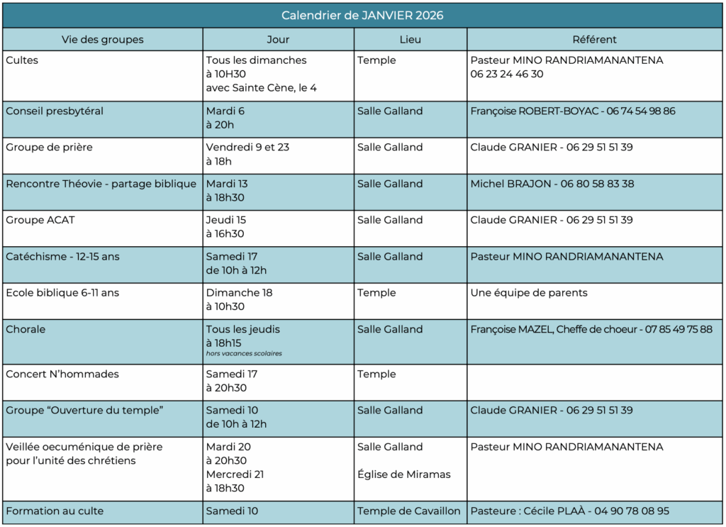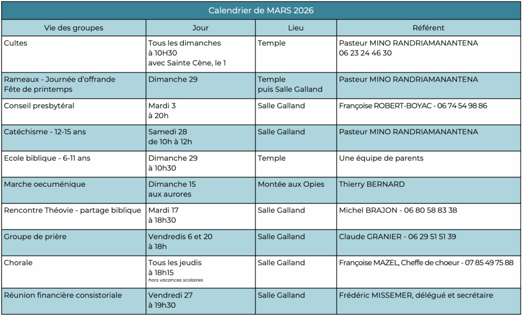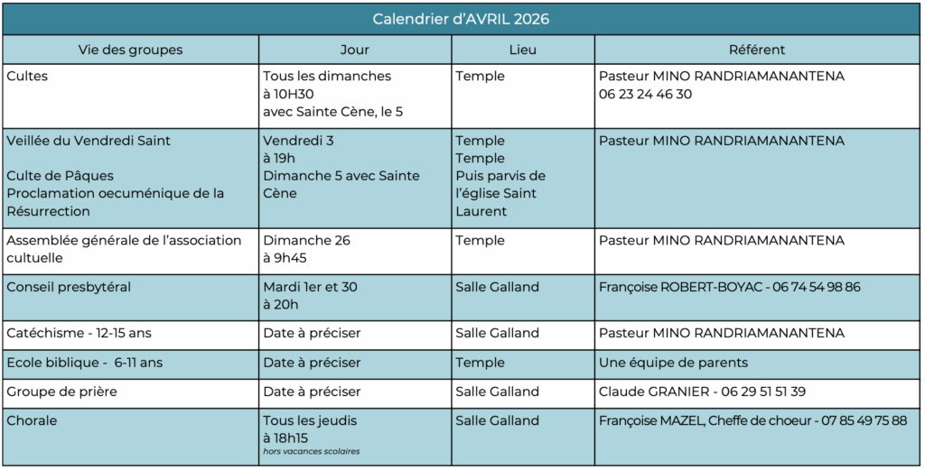 Les rendez-vous de célébration cultuelle